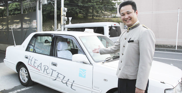 行き先を伺って目的地まで安全運転します。全車カーナビを装備しているので、土地勘がない場所でも安心です。