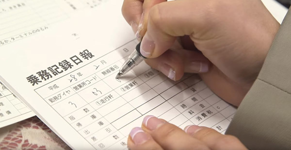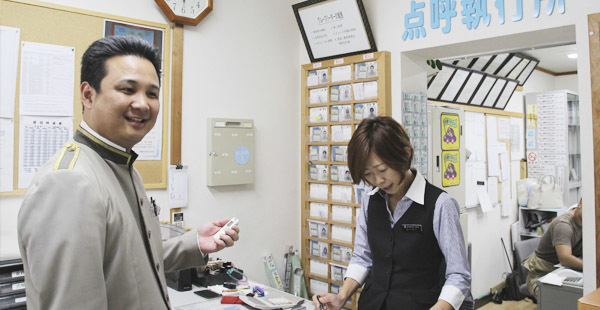 事務所でタイムカードを押して、タクシーを走らせる前の準備をします。